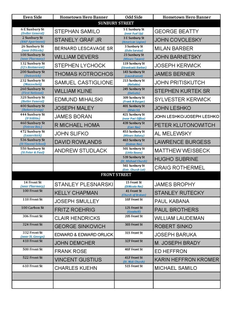 The Borough of Minersville is once again hosting the Hometown Hero Banner Program. We are seeking your help in sponsoring a Minersville Hometown Hero Banner.